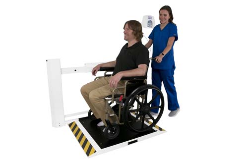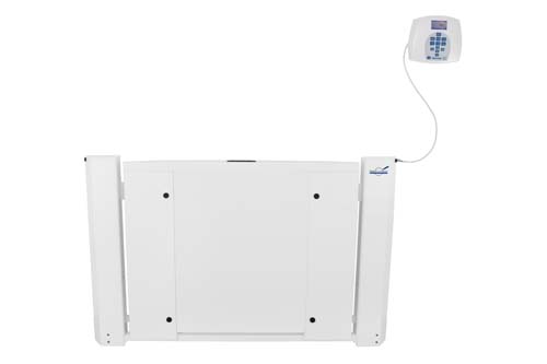 Antimicrobial wall-mounted fold-up wheelchair scale, pounds & kilograms